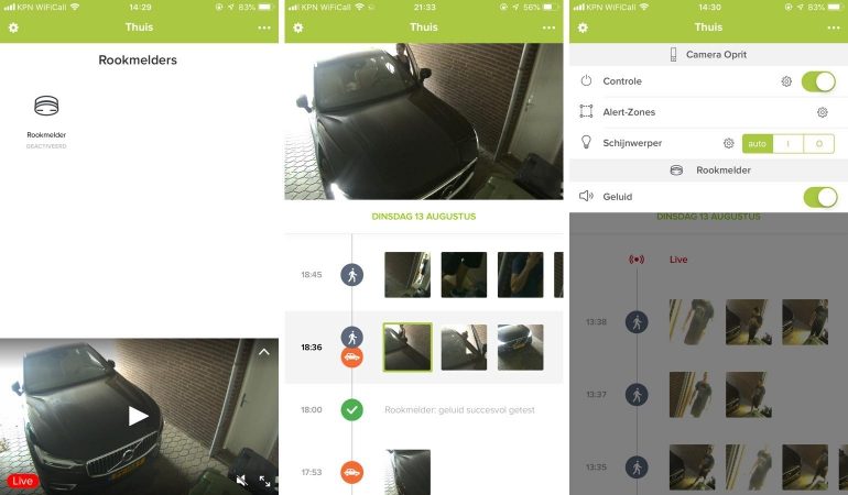 De app werkt soepel en is strak vormgegeven, maar doordat je via verschillende wegen bij bepaalde instellingen kunt komen kan het wat onoverzichtelijk aanvoelen. De app vereist dus wat gewenning. Qua functionaliteit zijn er genoeg opties om de camera naar eigen wens af te stellen, maar toch missen we een aantal zaken. Zo is gezichtsherkenning niet aanwezig, een optie dit wel op de Netatmo Welcome camera zit. Daarbij hadden we graag wat meer geavanceerde instellingen voor de combinatie van meldingen, tijdsschema’s en zones gezien. Meer een ‘als dit, dan dat’ principe om de meldingen echt te personaliseren.