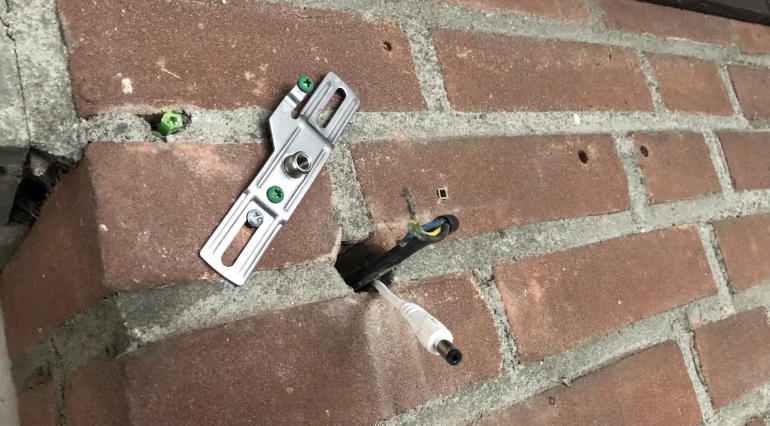 De Netatmo Presence is bedoeld als camera met een vaste plek, een plek waar je soms een schijnwerper op wilt hebben om te zien wat er gebeurt. Denk hierbij aan een oprit of een tuin. Het is dan ook een van de weinige slimme camera’s die zonder adapter en stroomkabel komt. Je moet de camera koppelen aan het lichtnet middels de blauwe en bruine stroomkabels, en dus heb je een punt nodig waar deze uit de muur komen. In de meeste gevallen is dit een plek waar al een lamp aan de muur hangt. Het maakt de plaatsing een stuk minder flexibel en dit is dus iets om voor aankoop over na te denken. In ons geval betekende het dat de lamp met bewegingssensor onder de carport het veld moest ruimen voor de Presence.