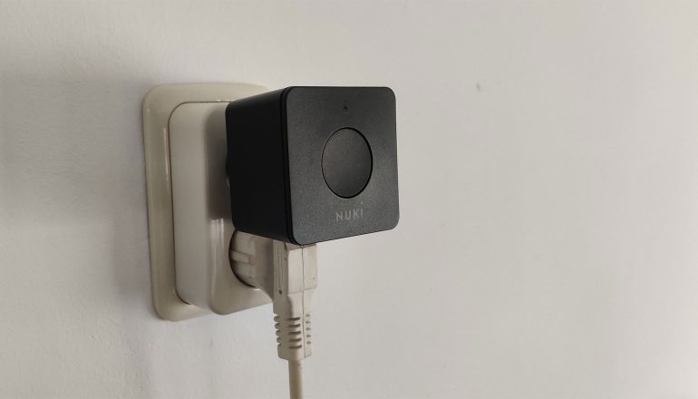 In principe kun je de Nuki Opener als een zelfstandig apparaat gebruiken. Maar dan moet je er wel zeker van zijn dat de bluetoothverbinding sterk genoeg is en bereik heeft tot aan de voordeur. Dat is negen van de tien keer niet het geval, dus raadt Nuki aan om de Nuki Bridge erbij te nemen. Met de Bridge zorg je voor een stabiele verbinding tussen het systeem en je telefoon en is het tevens mogelijk de deur via wifi te openen. Dat betekent dat je zonder bridge de voordeur dus niet kunt ontgrendelen zonder daadwerkelijk thuis te zijn.