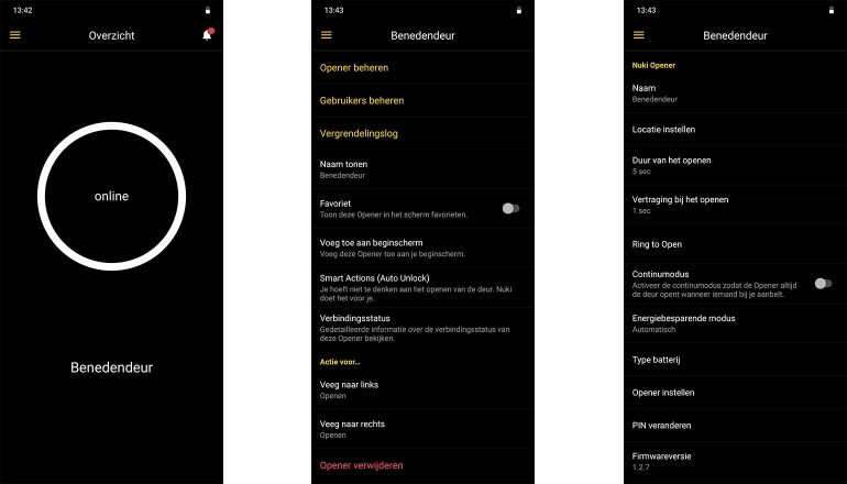 Je locatie en bluetooth moeten normaliter aanstaan voor een directe verbinding met het systeem. Maar wanneer je dat niet doet (en dus geen gebruikmaakt van Auto Unlock), dan kun je de deur beneden ook openen door binnen de app in het thuisscherm vanaf de zijkant te vegen. Dan opent de deur zich vanzelf. Voor Android 10 gebruikers kan dit een beetje wennen zijn, helemaal als ze net geleerd hebben dat de terugknop op eenzelfde manier werkt. Maar dat is iets waar de meeste gebruikers op dit moment geen last van zullen hebben.