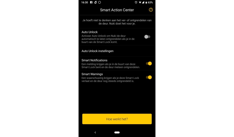 Nuki is een hele mooie oplossing, maar je moet goed nadenken over welke functies je precies wilt. Zo komen wij meestal binnen via de garage. De ‘Auto-unlock’ functie is dan eerder een gevaar dan wel een hulp. De deur wordt immers geopend, terwijl dat niet nodig is. Het lijkt ons sowieso veiliger om auto-unlock uit te schakelen. Dankzij Smart Notifications kan je wel instellen dat je melding krijgt als je in de buurt komt van het slot, en of je het nu wilt openen. Bijna handsfree, maar veiliger. En je kunt ook een melding krijgen als je uit de buurt van het slot gaat, en de deur niet op slot is. Nog een probleem met Smart Unlock is dat iedere smartphone-gebruiker het zelf kan activeren. In tegenstelling tot andere beheersacties zit die actie niet beschermd achter een pincode.