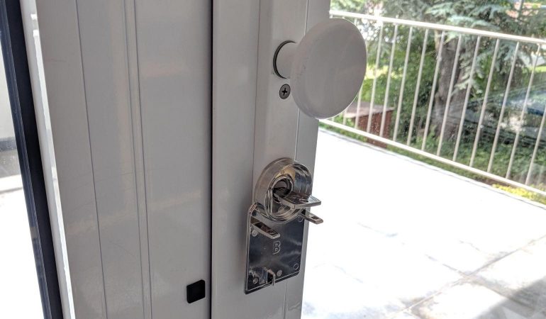 Schakel misschien ook meteen de knop-functies uit als de deurknop zich te dicht bij een brievenbus opening of kattenluik bevindt. Een druk op de knop en deur is open. Je kunt het slot van binnenuit nog steeds manueel bedienen door aan de zilveren ring te draaien. Ook dat is veiliger.