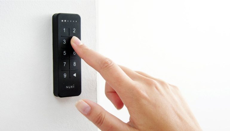 De compacte keypad kan met twee schroeven bevestigd worden aan een muur, of met de zelfklevende plakband naast of in de buurt van de deur gehangen worden. Daarna configureer je de pad via de app en koppel je hem aan de Nuki Smart Lock.