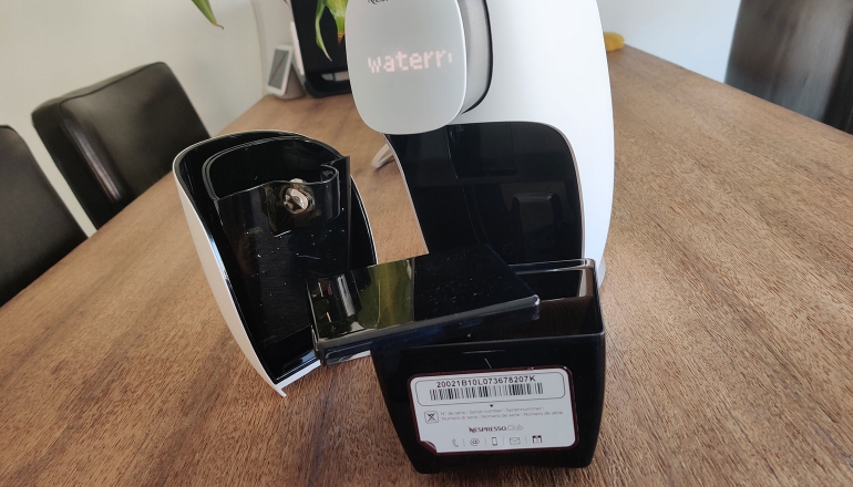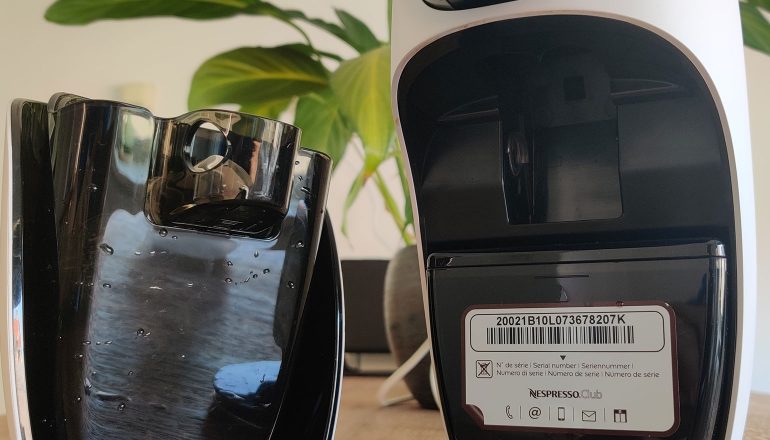 Daarnaast is opvallend hoe klein het waterbakje is. Hier gaat ongeveer 500 milliliter in. Drink je dus geregeld een lungo, dan zul je de waterbak meerdere keren per week moeten bijvullen. Dat is jammer en zit de ervaring best in de weg. Het design van het koffiezetapparaat leent zich namelijk niet voor het snel bijvullen van de waterbak. Die bak zit namelijk achter de twee hierboven genoemde bakjes en dus in het systeem. Toegegeven: de buitenkant van het apparaat oogt daardoor modern, maar wat is dat waard als dat het gebruik ervan in de weg zit?