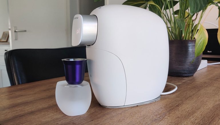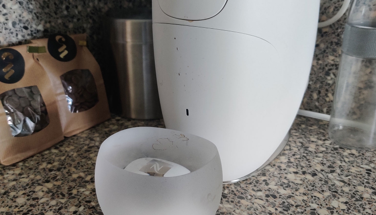We hadden het er al even eerder over in de review: het design. Het apparaat oog futuristisch en is echt het pronkstuk van je keuken met zijn ronde vormgeving. De gebroken witte kleur is echter minder aantrekkelijk. Als er koffiespetters zijn (en die zijn er), dan zie je dat namelijk heel snel terug op de buitenkant en dat oogt onfris. Bovendien wordt er ook een verhoging meegegeven waar je kleine bekers op zet en ook die wordt snel vies. Het is gelukkig allemaal ook weer snel schoon, maar een zwarte kleurvariant lijkt ons gewoonweg beter.