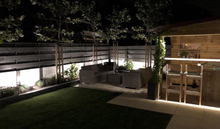 Als eenmaal de juiste positie voor elke lamp gekozen is en de kabels zijn uitgerold is het koppelen letterlijk plug-and-play. Je schroeft de basis van de lamp, steekt de kabel binnen door naar buiten, schroeft deze op de connector en schroeft vervolgens de basis weer terug aan de lamp. Wil je de pin voor in de grond gebruiken dan moet je die voor het terugschroeven van de basis eerst middels een schroef aan de basis bevestigen. Een kind kan de was doen. Vervolgens is het een kwestie van de lampen in het zand steken en de kabels netjes onder het zand wegwerken. Je hoeft ze niet heel diep weg te werken want het is een 12-volt-systeem, maar houd er bij werkzaamheden in de tuin wel rekening mee dat er een kabel ligt.