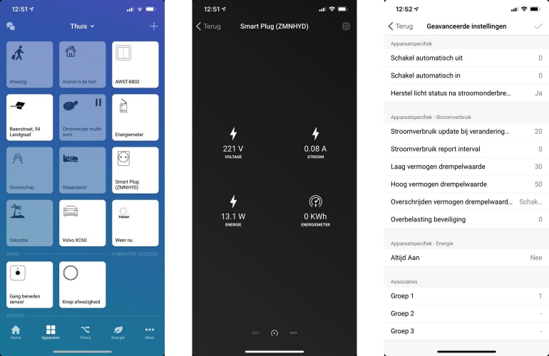 Het meest simpele wat je met de Qubino Z-Wave Smart Plug is natuurlijk schakelen, maar er zijn meer mooie dingen die je met een slimme stekker kunt doen. En dat komt onder meer door de toevoeging van het energieverbruik. De plug laat je in real-time zien wat het voltage, de ampère en het wattage van het aangesloten apparaat (of de aangesloten apparaten) is. Daarnaast zie je het aantal KWh dat tot op heden verbruikt is door het aangesloten apparaat. Met die informatie kun je natuurlijk gaan spelen. Zo hebben wij de stekker gekoppeld aan de droger om automatisch een melding te krijgen wanneer deze (domme) droger klaar is.