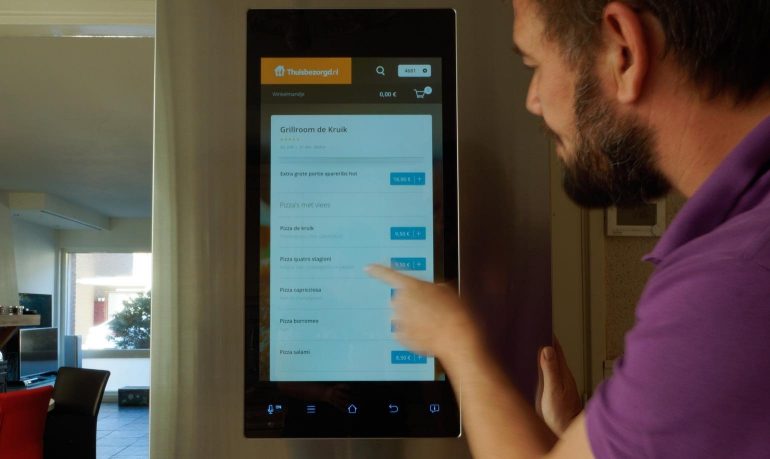 Geen zin om te koken? Ook dan kan de Family Hub je van dienst zijn. Een van de apps die beschikbaar is, komt van Thuisbezorgd.nl. Op basis van je locatie krijg je een overzicht van alle restaurants die bij jou aan de deur bezorgen. We hebben het geprobeerd en het werkt zoals je mag verwachten. Je zoekt op het scherm uit wat je wilt hebben, vult je adresgegevens in en je bevestigt de bestelling. Binnen 35 minuten stond de lokale grillroom met onze bestelling op het erf. Dit kan natuurlijk ook gewoon via je tablet of telefoon. Maar toch…het had iets magisch om te bestellen via de koelkast.