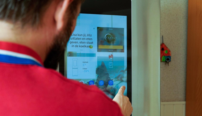 Blikvanger is het grote touchscreen van 21,5-inch dat in de deur van het koelgedeelte zit verwerkt. Het doet nog het meest denken aan een reusachtige tablet en dat is het in feite ook: niet alleen qua vormgeving, maar ook wanneer je hem bedient. Het scherm reageert vlot op aanrakingen en je bladert dus snel door de verschillende schermen. Het touchscreen geeft toegang tot de slimme functies, maar je kunt ook diverse instellingen wijzigen. Denk aan het veranderen van de ingestelde temperatuur of het aan- of uitzetten van het deuralarm dat afgaat wanneer de koelkast te lang openstaat.