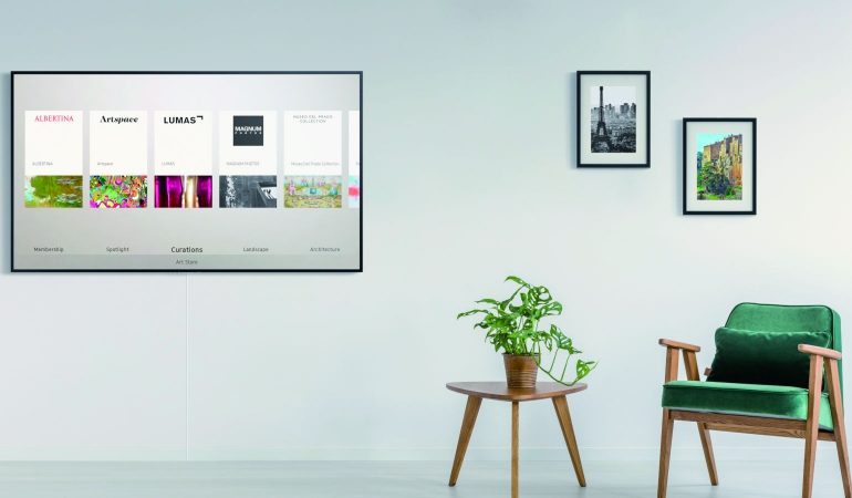 Ben je op zoek naar nog meer keuze, bezoek dan de Art Shop. Daar kan je eenmalig kunstwerken aankopen (20 euro/werk) of een abonnement nemen (5 euro/mnd). Daarmee krijg je toegang tot meer dan 500 beelden in verschillende collecties (Old Masters, Albertina, Magnum Photos, Museo Del Prado, Saatchi Art,…). En uiteraard kan je ook je eigen foto’s tonen (via de Smart View app of via USB). Daarbij krijg je ook de optie om twee of drie foto’s in een montage te zetten of om een panoramische foto te gebruiken.