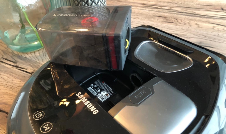 Wat betreft het onderhoud scoort de VR7000 Powerbot goed. Samsung heeft het apparaat namelijk voorzien van een zelfreinigend borstelsysteem. In tegenstelling tot de Neato hoeft er geen filter vervangen te worden om de zoveel tijd en hoef je ook geen haren of andere vuiligheid uit de borstel te plukken. Het enige dat je moet doen is de stofbak legen zodra deze vol is, wat gemiddeld neerkomt op eenmaal per week. Het filter dat zich in de stofbak bevindt is overigens ook gewoon te wassen waardoor je geen dure accessoires hoeft te kopen. Het systeem werkt zeer goed, en daar zijn we dus zeer enthousiast over.
