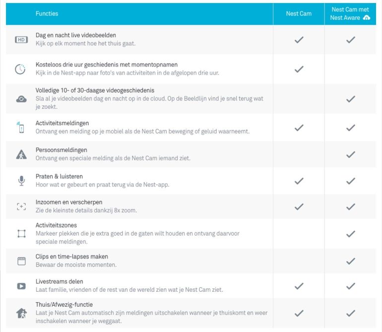 Wanneer je de Nest Cam Outdoor aanschaft, installeet en in gebruik neemt krijg je een proefperiode van 30 dagen voor Nest Aware, de abonnementsdienst van Nest. Deze dienst biedt je voor een vast bedrag per maand of per jaar toegang tot alle functies en mogelijkheden van de camera. Echter, als je niet wenst te betalen kun je de camera nog altijd blijven gebruiken maar dan met minder mogelijkheden en functies.