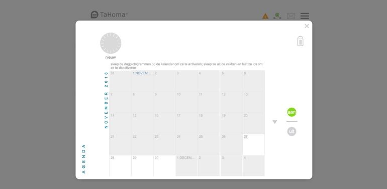 Zowel de app als de webinterface bieden toegang tot een dashboard. Hier kun je zien welke (slimme) acties en scenario’s er elke dag uitgevoerd zijn. De webinterface biedt daarnaast ook een ‘toezicht’ venster waarin je een tijdlijn ziet van de dag. Hierin zie je de acties en scenario’s staan die uitgevoerd zijn of gepland staan.