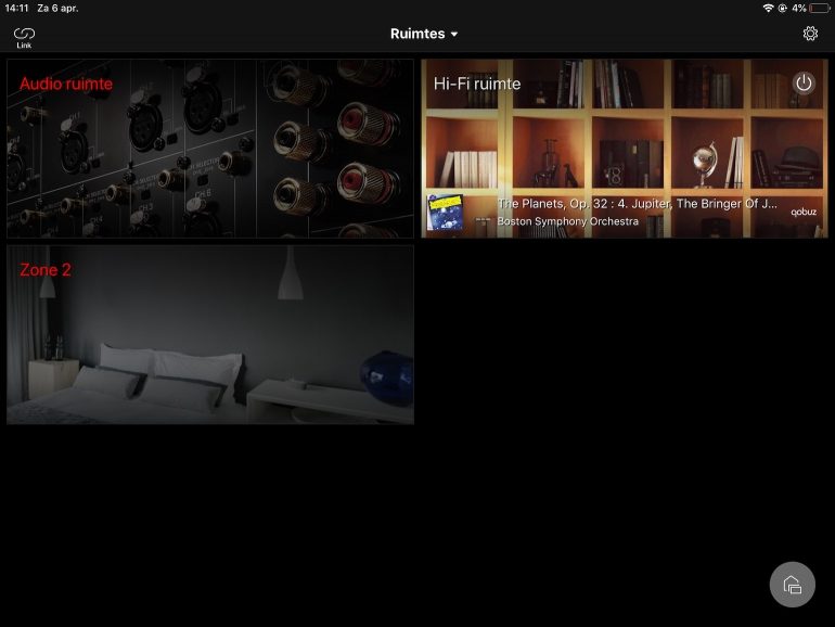 Yamaha kiest er voor om het scherm met het overzicht van de verschillende kamers heel visueel te maken. Elke toestel heeft een groot beeld, en dat kan zelfs een eigen foto zijn. Je kunt dus de app zo inrichten zodat je bij de speaker in de keuken een foto toont van je eigen kookeiland.