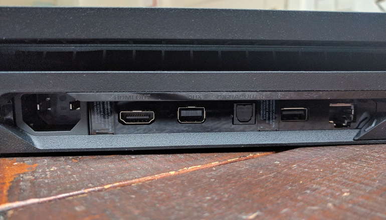 Qua design is er ook het één en ander veranderd, maar niet heel veel. In plaats van twee lagen bestaat de PS4 Pro nu uit drie lagen en daardoor is het apparaat een stukje hoger. De uitknop zit aan de linkerkant en is mooi weggewerkt; datzelfde kunnen we zeggen van de knop waarmee je de discs uitwerpt. Daar zitten tevens twee usb-poorten aan de voorkant, waar je de controller mee kunt opladen, bijvoorbeeld. Op de achterkant tref je alle andere poorten aan, waarmee je de spelcomputer kunt aansluiten op een televisie of PlayStation VR-headset.