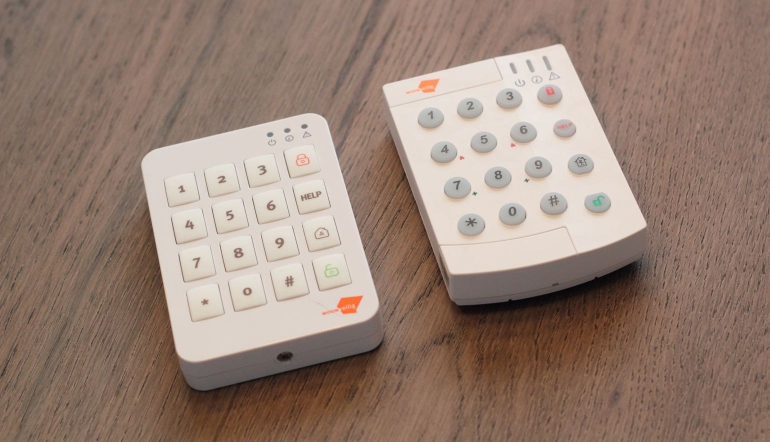 Het bedieningspaneel heeft hetzelfde formaat als zijn voorganger maar de knoppen liggen nu dieper in de behuizing en voelen ook kwalitatief beter aan. Hetzelfde geldt voor de kleine afstandsbediening waarmee het alarm in- of uitgeschakeld kan worden. De deur/raamsensor is een stuk kleiner geworden en valt dus minder op bij de deur of tegen het raam. De bewegingsmelder is ook iets compacter geworden maar lijkt afgezien van wat afgeronde hoeken nog veel op zijn voorganger. Al met al is de indruk van de nieuwe hardware zeer goed; een fris, nieuw design en meer gevoel van kwaliteit.