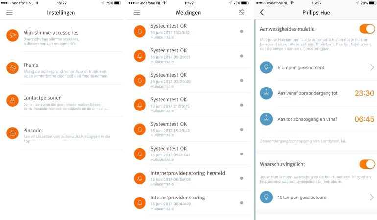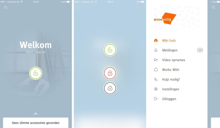 Je hebt de mogelijkheid je alarm in- of uit te schakelen, kunt direct koppeling leggen met apparatuur binnen het Works with-programma, kun de meldingen van de laatste dagen bekijken, kunt de contactpersonen (voor meldingen) aanpassen en je kunt de pincode van het alarmsysteem wijzigen. Als je camera’s of slimme stekkers van WoonVeilig hebt dan kun je binnen de app ook de videofeed bekijken en de slimme stekkers bedienen. De app werkt vlot en doet verder precies wat je ervan mag verwachten. De online interface, waar je een overzicht van de gekoppelde hardware ziet en geavanceerde instellingen kunt aanpassen, is nog altijd onveranderd gebleven. Meer informatie hierover lees je in de eerdere review.