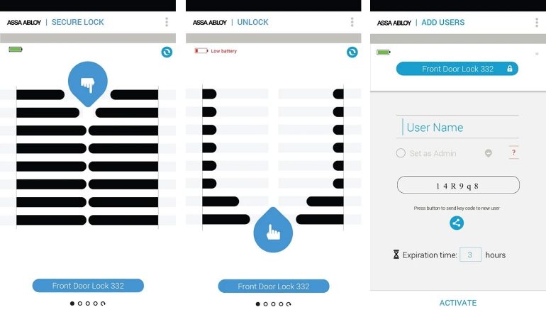 De andere gebruiker dient dan fysiek aanwezig te zijn bij het slot voordat het kan worden geopend. Het slot vraagt dan om een willekeurig gegeneerde code die in het bezit is van de andere persoon, zodat de beveiliging weet dat het goed zit. De digitale beveiliging maakt gebruik van AES 128 bits-versleuteling, dezelfde versleuteling die we ook bij internetbankieren tegenkomen. Wanneer de code is ingevuld, kan ook iemand anders met de app naar binnen. Je krijgt echter geen notificatie wanneer die persoon je huis binnenkomt.