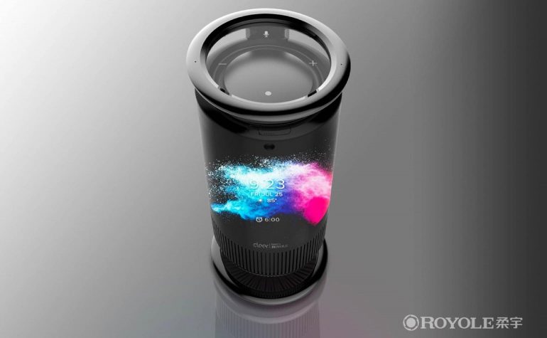 De Mirage Smart Speaker van Royole is een slimme speaker met een prijskaartje van 899 dollar, en hoewel dat 99 procent van de geïnteresseerden al zal doen afschrikken beschikt de speaker wel over een unieke feature. Rondom de speaker is namelijk een buigbaar 8-inch display geplaatst, voorzien van een touchscreen. Je kunt de speaker dus middels spraak bedienen, zoals je elke andere slimme speakers bedient, maar ook middels je vingers op het scherm.