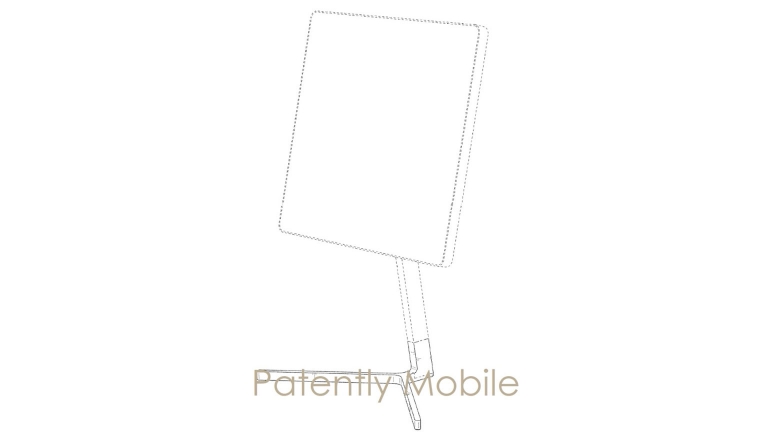 De patentaanvraag, zoals hieronder te zien, toont hoe het apparaat van Samsung er wellicht uit komt te zien. Het gaat om een display dat op een soort driepoot gemonteerd wordt. Daarmee geeft Samsung zijn eigen draai aan een ‘slimme speaker’, waarvan steeds meer grote techbedrijven er een op de markt hebben.