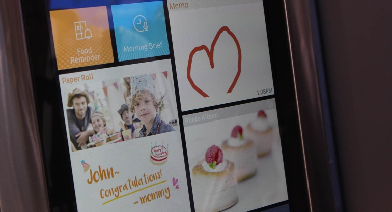 Een ander interessant slim apparaat is de Family Hub koelkast. Deze slimme koelkast beschikt over diverse fraaie features, waaronder Bluetooth-speakers in de deuren, camera’s in de deuren, een touchscreen op de voorzijde en WiFi voor draadloos internet. Volgens Samsung verandert de rol van de koelkast zoals we die kennen en wordt het meer een middelpunt van het huishouden. Communiceren met de familie zal dan ook steeds vaker via de koelkast gebeuren. Samsung belooft zelfs dat deze slimme koelkast de familie dichter bij elkaar brengt.