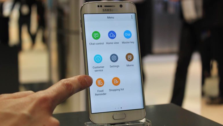 Het belangrijkste dat we uit de presentatie van Samsung haalden was de focus op het slimme huis, ofwel smart home. De Koreaanse fabrikant verwacht dat in 2019, over drie jaar al, 25 procent van alle huizen in Europa slim is, in meer of mindere mate. Dat betekent dat apparaten in huis met elkaar kunnen communiceren en dat gebruikers middels apps op smartphone of tablets met het netwerk van apparaten kunnen communiceren. Het smart home is volgens Samsung binnen drie jaar dan ook een bekend begrip.