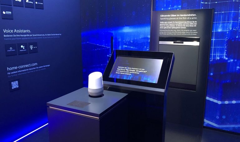 Siemens liet tijdens de beurs zien wat er zoal mogelijk is met het verbeterde Home Connect-platform, met name op het gebied van spraakbediening. Zo is het bijvoorbeeld mogelijk om je Home Connect oven met een spraakcommando tegenover de Google Assistent automatisch te laten openen. Ook liet het bedrijf zien hoe een smartwatch met de keukenapparatuur kan communiceren. Het bedrijf is een samenwerking aangegaan met Fitbit en laat zien hoe je een spraakcommando voor bijvoorbeeld je oven aan je smartwatch door kunt geven.