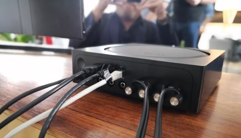 Een belangrijke nieuwigheid is de HDMI-ingang. Via deze HDMI-poort met ARC-ondersteuning kun je een televisie aansluiten en het volume regelen met de remote van de tv. Er is ook een ingang (die zowel analoog als digitaal kan functioneren) voor een audiotoestel, zoals een draaitafel met een versterkte uitgang. Sonos heeft echter geen bijkomende HDMI-ingangen voorzien, zodat de Sonos Amp nog wegblijft van een echte AV-receiver.