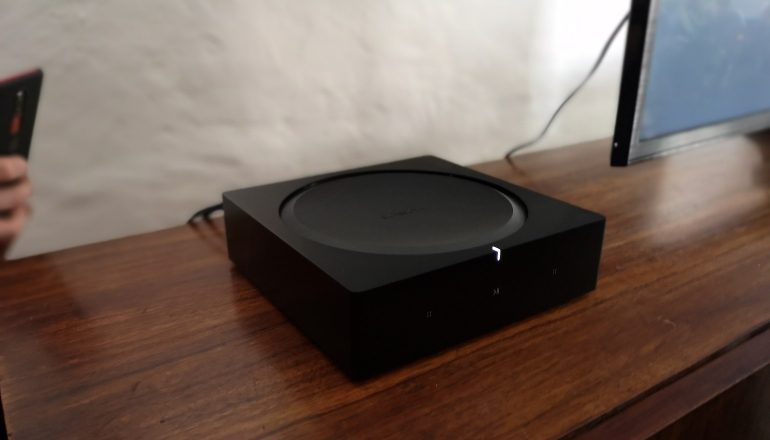 Ondanks de focus op de installatiemarkt mag de Sonos Amp nog altijd ook in een gewone woonkamersetting plaatsnemen. Daarvoor is het nieuwe toestel voldoende strak afgewerkt, met een matzwart design en een touchbediening bovenaan. We hebben de nieuwe Sonos Amp op het event kunnen bekijken en beluisteren, en qua uitstraling en bouwkwaliteit zit het volledig op het niveau van de nieuwe Play:5 en Beam.